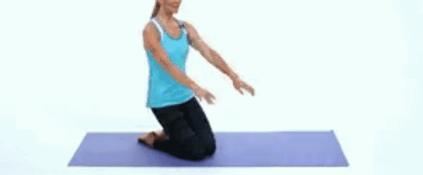 动作3 双腿跪地,臀部向下时,双手向前摆,臀部不要坐在双脚上,要悬空,20下为一组,做5组。